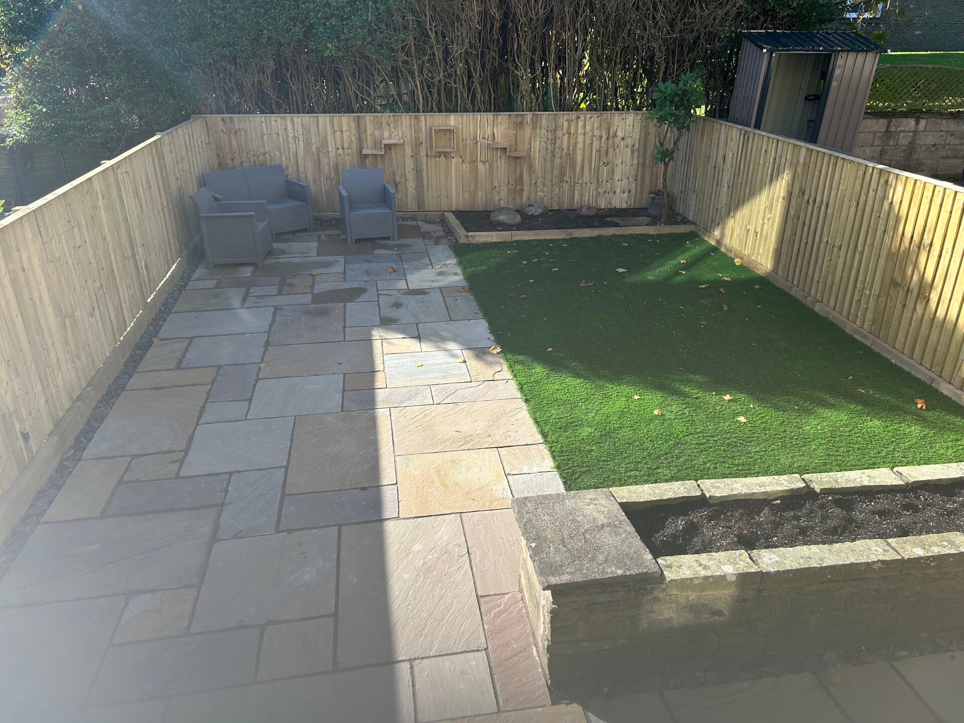 Welcome to Allerton Garden and Landscaping Services' portfolio, showcasing our finest work across Leeds, UK. We pride ourselves on our adaptability and commitment to excellence, transforming outdoor spaces with expert fencing, decking, artificial grass, new lawns, raised beds, and other sleeper installations. Explore what we have to offer and how we can contribute to your garden's success.